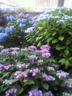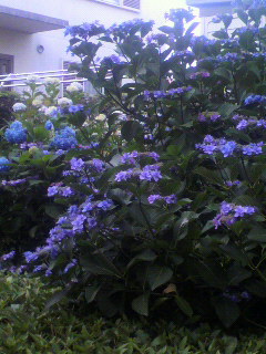 夕方、緑道をジョギングしてたら、あじさいがいっぱい。