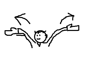 こぶしをたてに突き出す!じゃなくて 横に広げる。