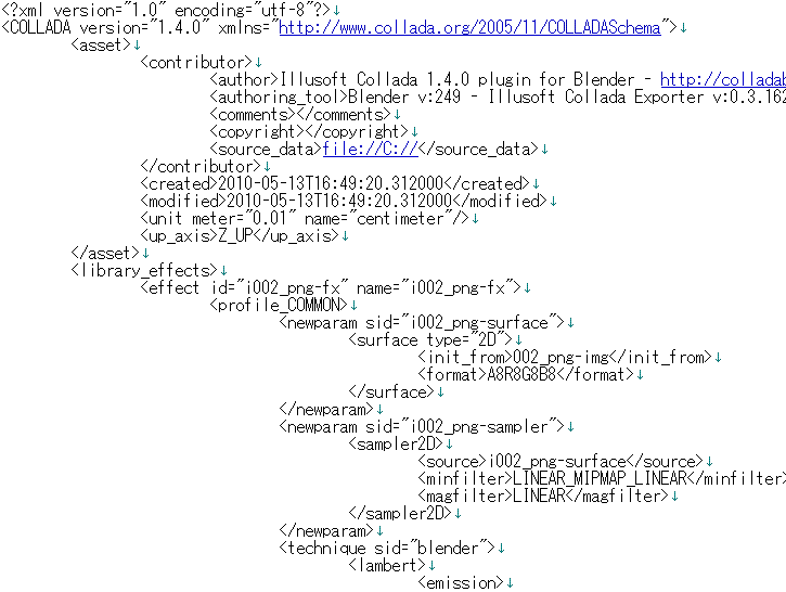 そこで最後の手段。.daeファイルをテキストエディタで読み込んでみた。